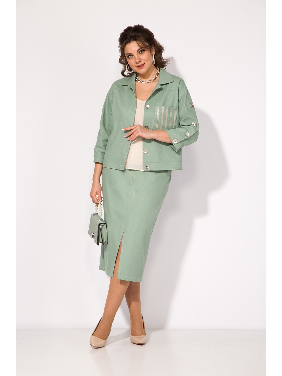 Представляем Вам стильный женский костюм из хлопкового денима (джинс), состоящий из зауженной юбки и свободного жакета!