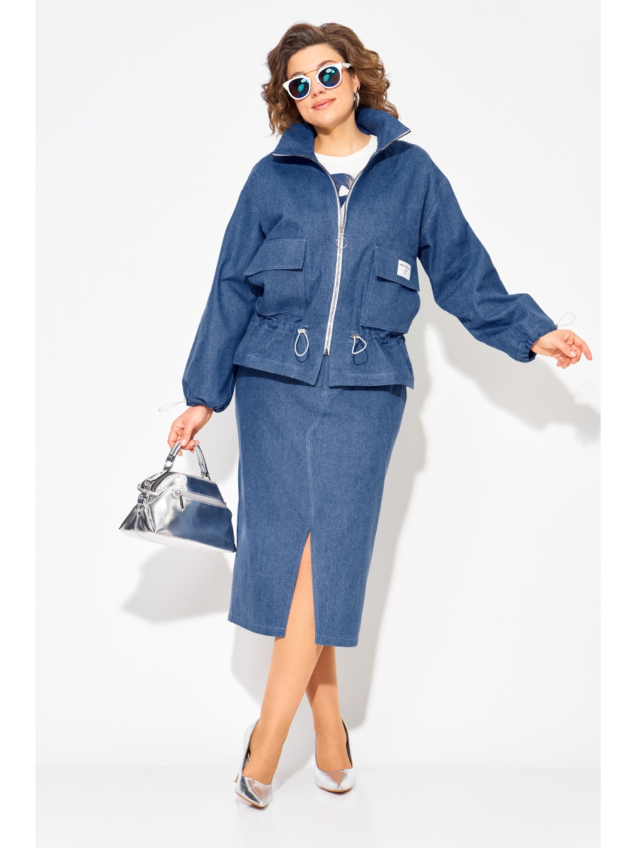 Модный и стильный юбочный женский костюм из денима с жакетом и юбкой — идеальный выбор для создания стильного образа!