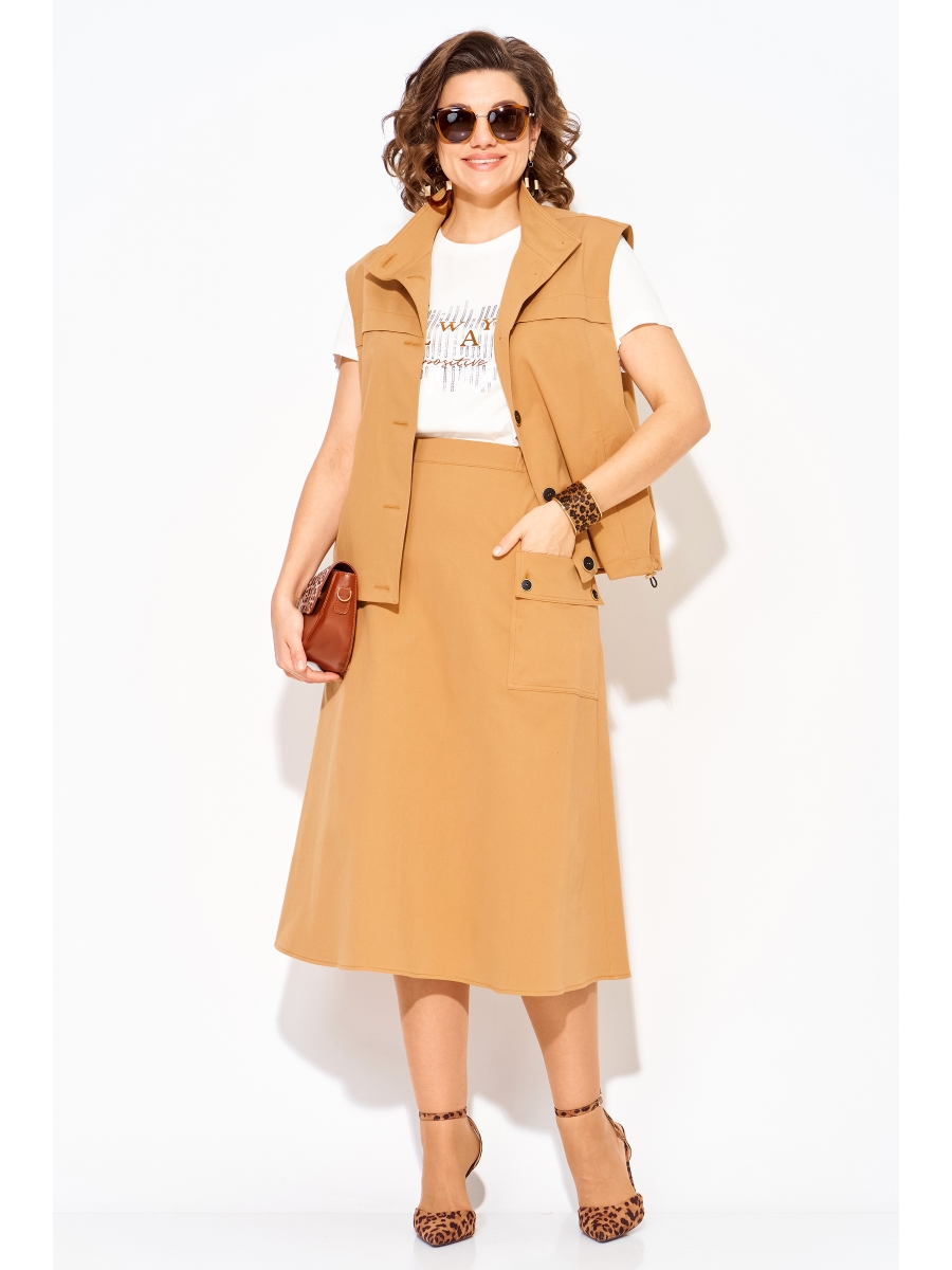 Этот костюм включает жилетку в стиле оверсайз на юбку-А-силуэта, что делает его универсальным вариантом для повседневных прогулок!