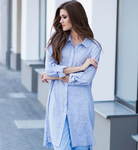 Блуза прямого силуэта со спущенной линией плеча, с застежкой-планкой на декоративные шнурки- завязки и пришивную кнопку. Вырез горловины V-образной формы. По боковым швам разрезы, низ прямой, разноуровневый по длине. Рукава одношовные, расширенные к низу.
