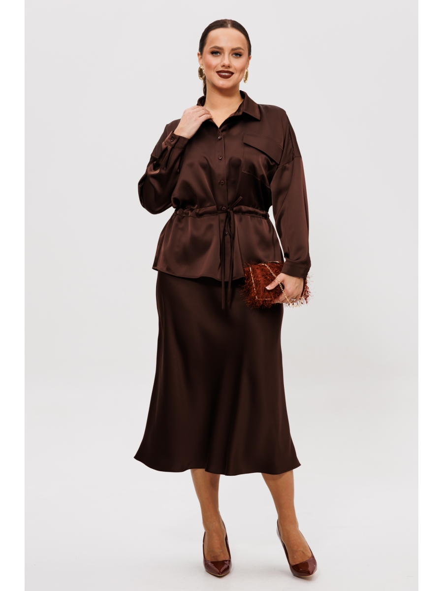 Юбочный костюм М-252 шоколад, Мублиз – купить с доставкой в Санкт-петербурге на peterburg.belpodium.ru