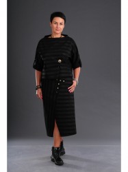 Комплект женский, состоящий из джемпера и юбки из трикотажной ткани, дизайн кожаная полоска.