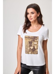 Базовая футболка из белого хлопкового полотна. Округлый вырез горловины, короткий втачной рукав со стильным отворотом.