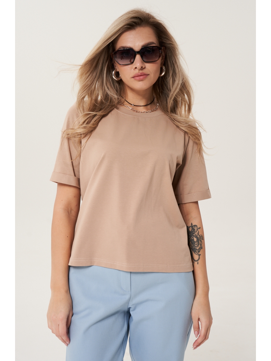 Невероятно комфортная, базовая футболка правильной длины. Ее удобно заправлять и носить навыпуск, отлично сочетается с юбкой, брюками с джинсами, а также можно надеть под жакет или кардиган.