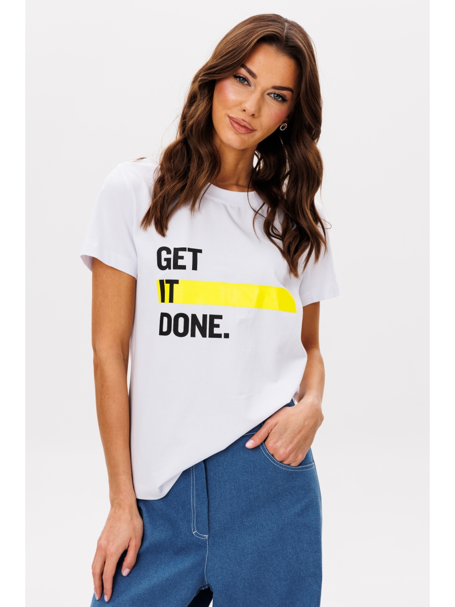 Базовые футболки - это конечно хорошо, но что делать, если хочется привнести в образ яркости, иронии и немного артистизма? Лучший способ выразить себя - выбрать вариант с классным говорящим принтом. Футболка классического кроя с втачным рукавом.