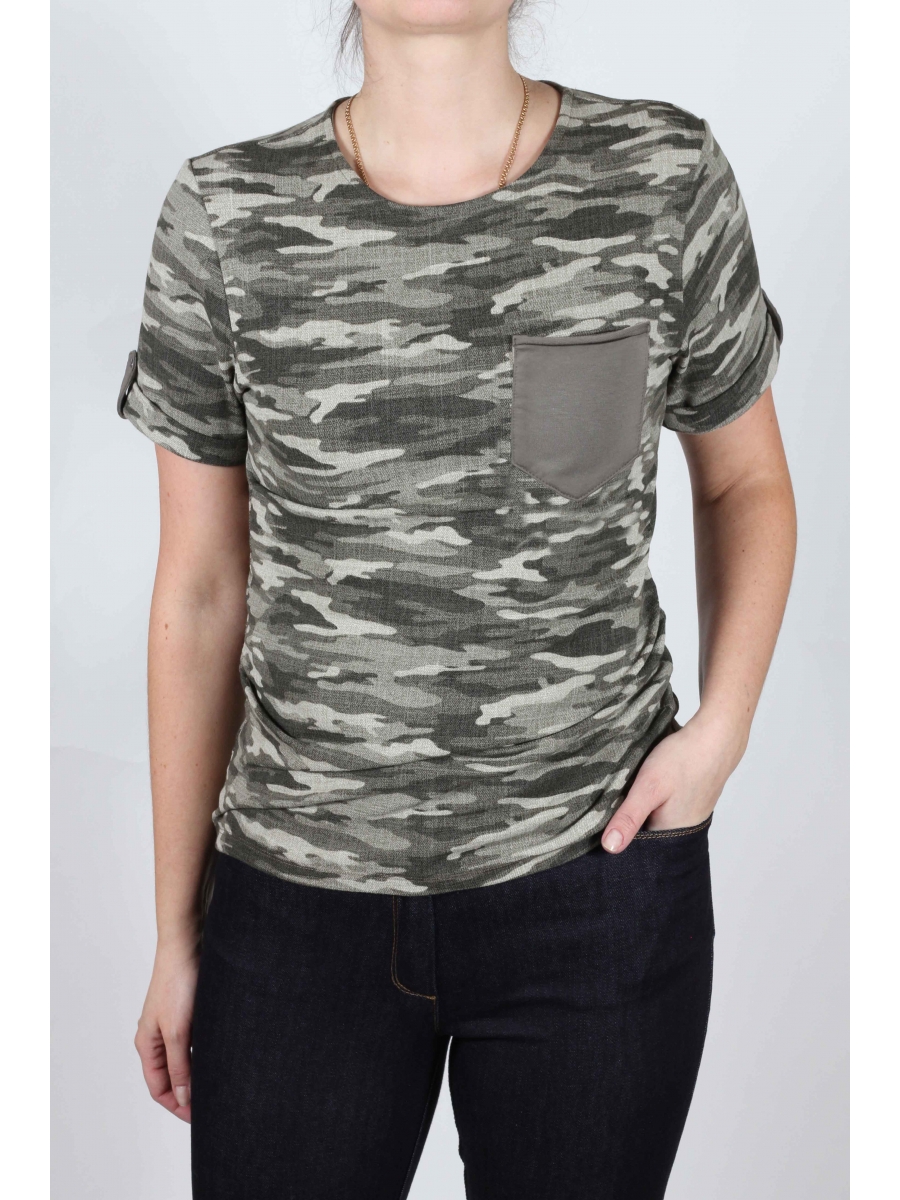 Джемпер в стиле милитари из высококачественного трикотажа с накладным карманом