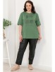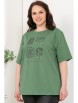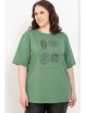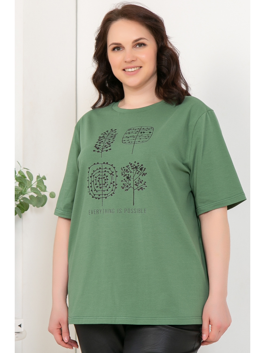Блуза женская прямого силуэта. Горловина круглая, с притачной бейкой. Рукав втачной, короткий.Посередине переда выполнена печать. Изделие изготовлено из кулирной глади.