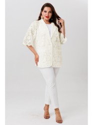 Бренд белорусской женской одежды больших размеров Anastasia представляет элегантный кружевной жакет. Жакет прямого силуэта со спущенным плечом. Рукав 3/4 длины. Застежка на пели и пуговицы, воротник пиджачного типа. По полочке идут накладные карманы, низ фигурный. Стильный жакет оверсайз невероятно удобный и практичный. Отличный вариант в офис, в школу, на работу, на каждый день. Жакет выгодно подчеркнет достоинства фигуры и скроет недостатки, подходит для девушек любых размеров одежды. Комфортный удобный, хорошая посадка и современный дизайн.