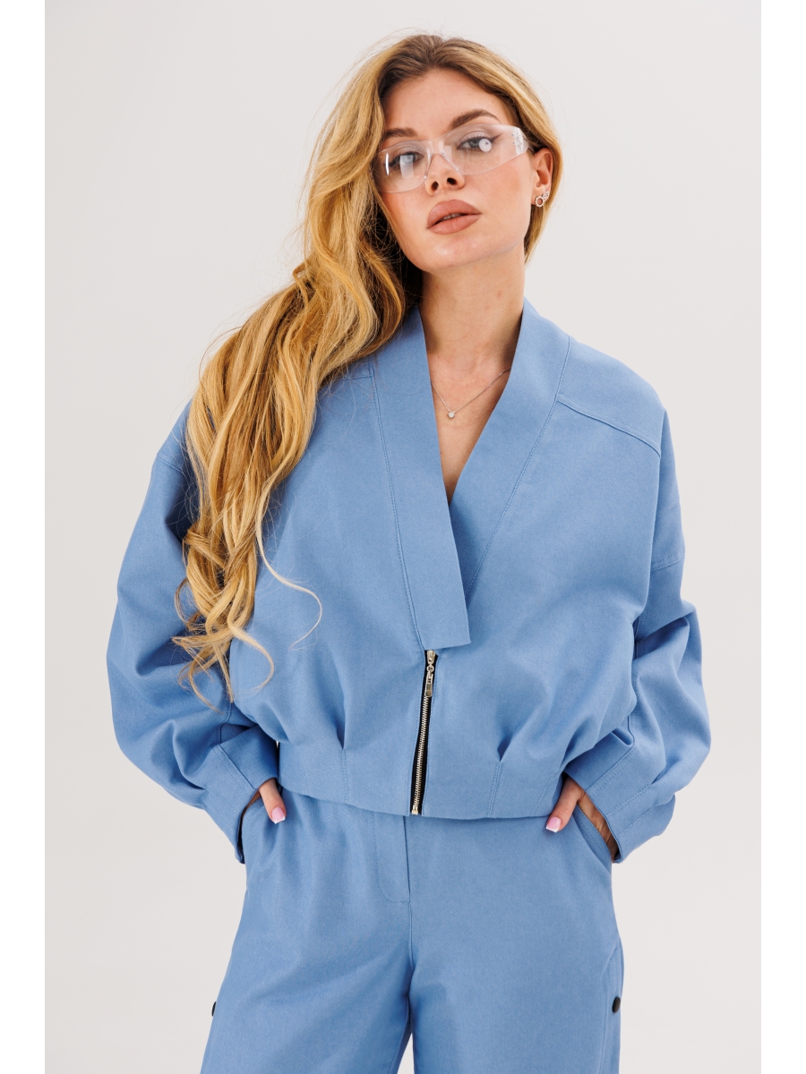 Оформить заказ →Жакет-бомбер "ОВЕРСАЙЗ" со спущенным плечом, воздушным рукавом, по низу рукава бантовые складки. По переду застёжка на молнию, воротник "шаль". Перед жакета на кокетке, по низу заложены складки. Спинка на кокетке, по низу резинка.