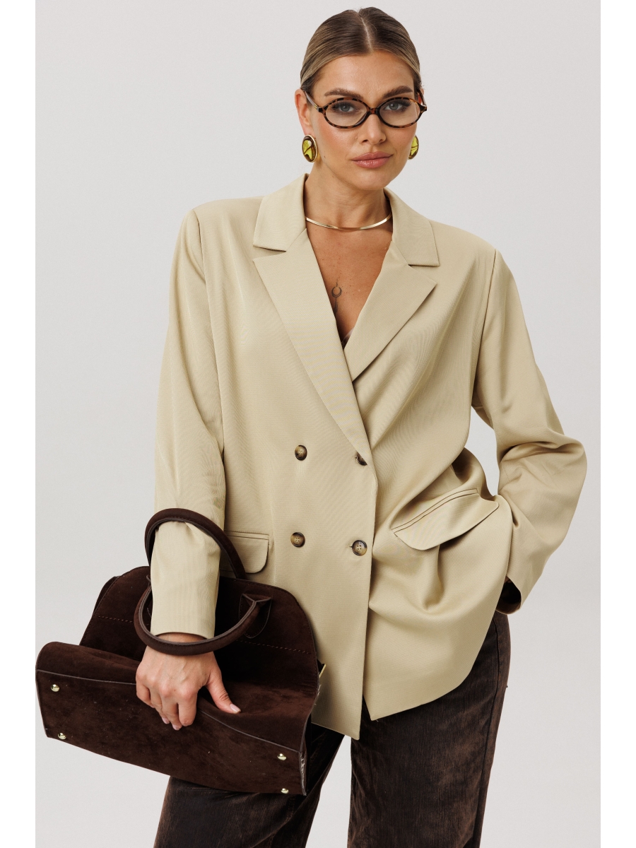 Двубортный жакет прямого силуэта с отложным воротником и лацканами актуален всегда: встреча с друзьями, поход на работу, деловая встреча или свидание.