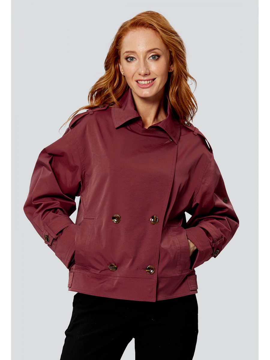 Модный, комфортный весенний жакет прямого силуэта от российского производителя D’imma Fashion Studio из мембранной ткани водонепроницаемостью 3000 мм. Модель с двубортной застежкой на пуговицы и с модным в этом сезоне отложным воротником на стойке. Бочки без боковых швов формируют безупречный силуэт. Карманы с листочками в рельефных швах дополняют образ и создают комфорт. На плечах погоны. По спинке отлетная кокетка. Жакет с оригинальными, комбинированными рукавами со складками ниже локтя.