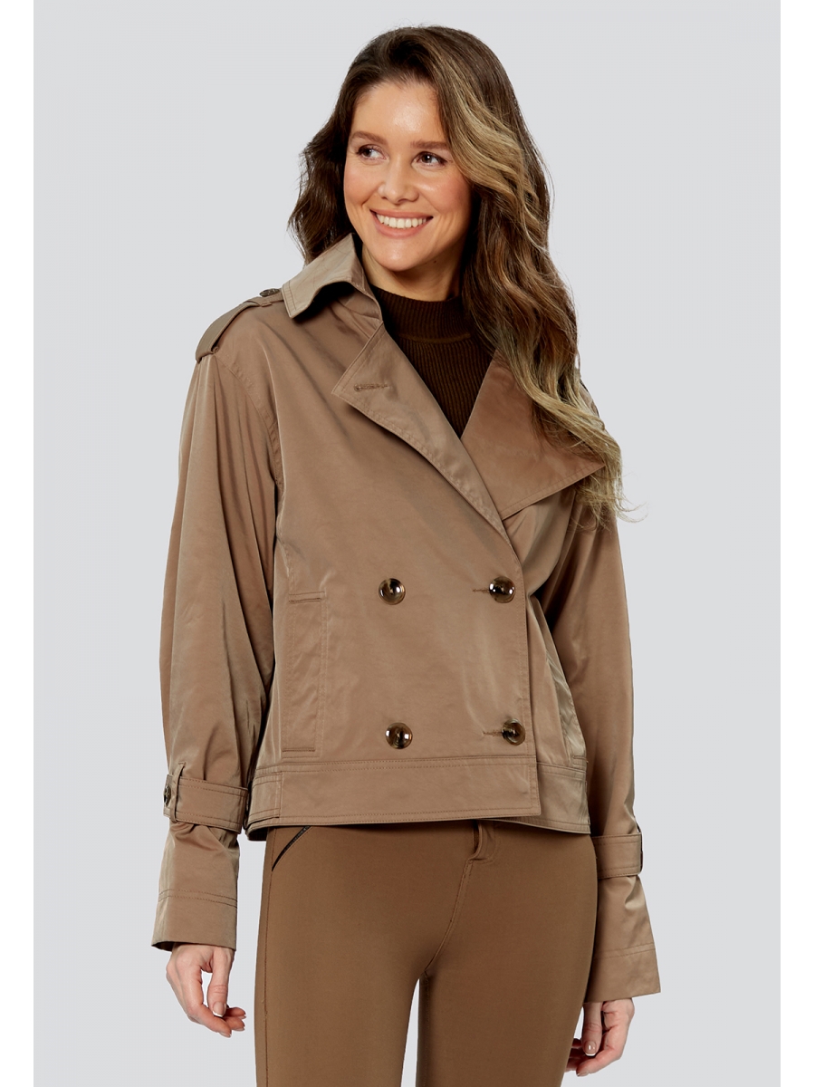 Модный, комфортный весенний жакет прямого силуэта от российского производителя D’imma Fashion Studio из мембранной ткани водонепроницаемостью 3000 мм. Модель с двубортной застежкой на пуговицы и с модным в этом сезоне отложным воротником на стойке. Бочки без боковых швов формируют безупречный силуэт. Карманы с листочками в рельефных швах дополняют образ и создают комфорт. На плечах погоны. По спинке отлетная кокетка. Жакет с оригинальными, комбинированными рукавами со складками ниже локтя.