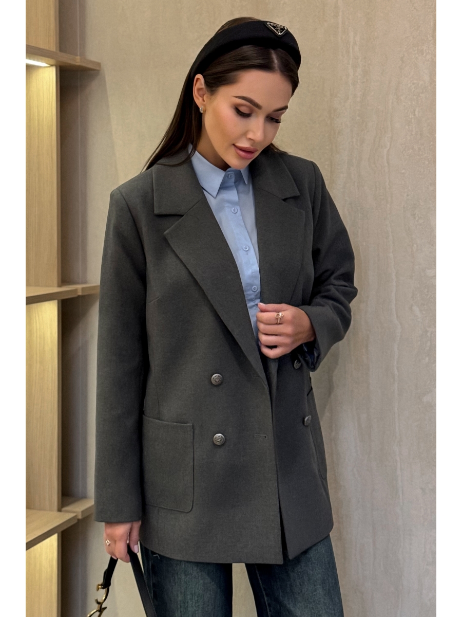 Классический серый жакет: универсальный элемент вашего гардероба/ Этот элегантный серый жакет станет отличным выбором для женщин, которые стремятся выглядеть стильно и уверенно в любой ситуации. Простой, но изысканный фасон идеально вписывается в офисный, деловой или повседневный стиль. Плотная ткань высокого качества, комфортная в носке и подходящая для прохладной погоды. Двубортный крой с изящными металлическими пуговицами и глубокие карманы, подчеркивающие лаконичность и практичность. Универсальный серый оттенок легко комбинируется с различными элементами гардероба. Жакет прекрасно смотрится как с классическими брюками, так и с джинсами или юбками, дополняя ваш образ женственными акцентами. Этот жакет — идеальный выбор для женщин, которые ценят стиль и функциональность. Добавьте его в свой гардероб, чтобы всегда выглядеть безупречно и соответствовать последним трендам моды! Жакет женский, свободного полуприлегающего силуэта, выполнен из костюмной ткани, на подкладке, с двубортной застежкой на 2 петли и 4 пуговицы (размер и цвет фурнитуры может незначительно отличаться от фото). Жакет предназначен для повседневной носки. Перед и спинка с отрезным бочком. Перед с нагрудными вытачками идущими от рельефов к центрам, в нижней части с накладными карманами. Карманы со скругленными углами. Спинка со средним швом. Горловина оформлена воротником пиджачного типа. Рукава втачные, двухшовные, длинные. Жакет с плечевыми накладками.