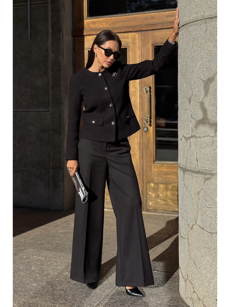 Элегантный твидовый жакет — это универсальная модель, созданная для женщин, которые ценят стиль, качество и комфорт. Классический силуэт, декоративные пуговицы и качественная ткань делают этот жакет актуальным как для офиса, так и для повседневных или вечерних образов. Жакет женский прямого силуэта, выполнен из твидовой ткани, на подкладке, со съемной декоративной брошью, с центральной бортовой застежкой на 4 петли и пуговицы (размер и цвет фурнитуры может незначительно отличаться от фото). Жакет может быть как нарядным, так и повседневным. Перед с нагрудными вытачками, идущими от боковых швов, в нижних частях с прорезными функциональными карманами с клапанами и листочками. Клапан застегивается на 1 петлю и пуговицу. Спинка со средним швом. Рукава втачные, двухшовные, длинные, низ локтевого шва с отлетной шлицей, застегивающейся на 3 петли и пуговицы. Горловина круглой формы, обтачная. Жакет с плечевыми накладками.
