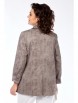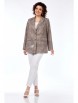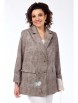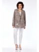 Жакет женский, прямого силуэта, выполнен из хлопковой ткани костюмного ассортимента. Воротник пиджачного типа, застежка центрально-бортовая на две петли и пуговицы. По переду обработана нагрудная листочка и прорезные карманы с клапаном и двумя обтачками, фигурные рельефы выходящие из проймы. Спинка со средним швом, в котором имеется высокая шлица. Рукава втачные двухшовные, с широкой подборкой низа. Изделие декорировано дизайнерской вышивкой.