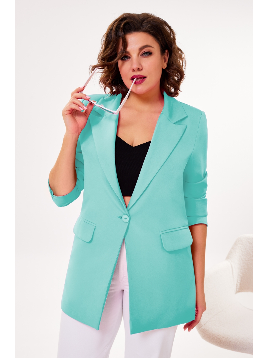Жакет прямого силуэта, полностью на подкладке, с застежкой по переду на пуговицу и функциональными карманами с клапаном. Рукав жакета втачной, полной длины.