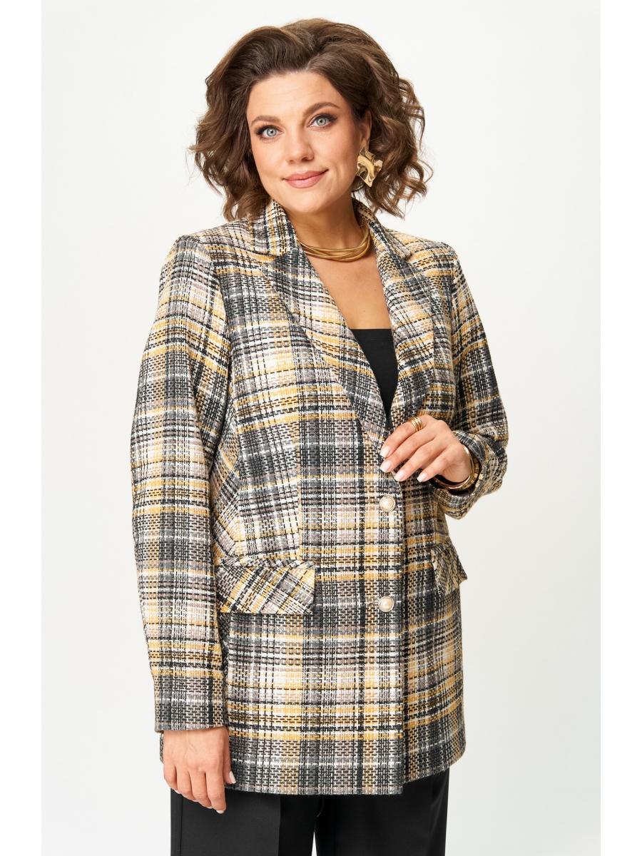 Оформить заказ →Жакет удлиненный, из твида, свободного силуэта с центральной бортовой застежкой на пуговицы до линии перегиба лацкана. По переду имеется отрезной бочок и вертикальные вытачки. С прорезными карманами с клапаном и двумя обтачками. Спинка цельная. Воротник пиджачного типа. Рукав двухшовный, втачной. Жакет на подкладке.
