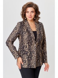 Жакет удлиненный, из текстильной ткани, полуприлегающего силуэта с центральной бортовой застежкой на пуговицы до линии перегиба лацкана. Спереди рельефные швы от плечевого шва, отрезной бочок и карман с клапаном. Спинка с рельефами от плечевого шва. Рукав втачной, двухшовный, по низу рукава шлица на петли-пуговицы. Воротник пиджачного типа. Жакет на подкладке.