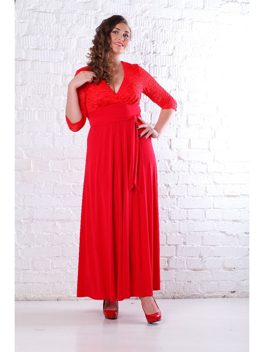 Элегантное длинное вечернее платье из легкого трикотажа с кружевом и рукавом 3/4.