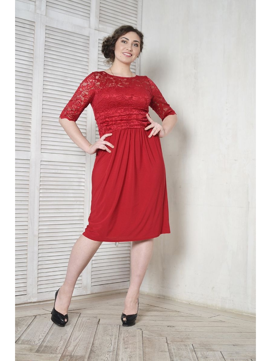 Утонченное коктельное платье из французского кружева. Внутренняя часть верха и юбка выполнены из трикотажа в тон. В области талии драппировка из кружева, скрывающая животик, если это необходимо.