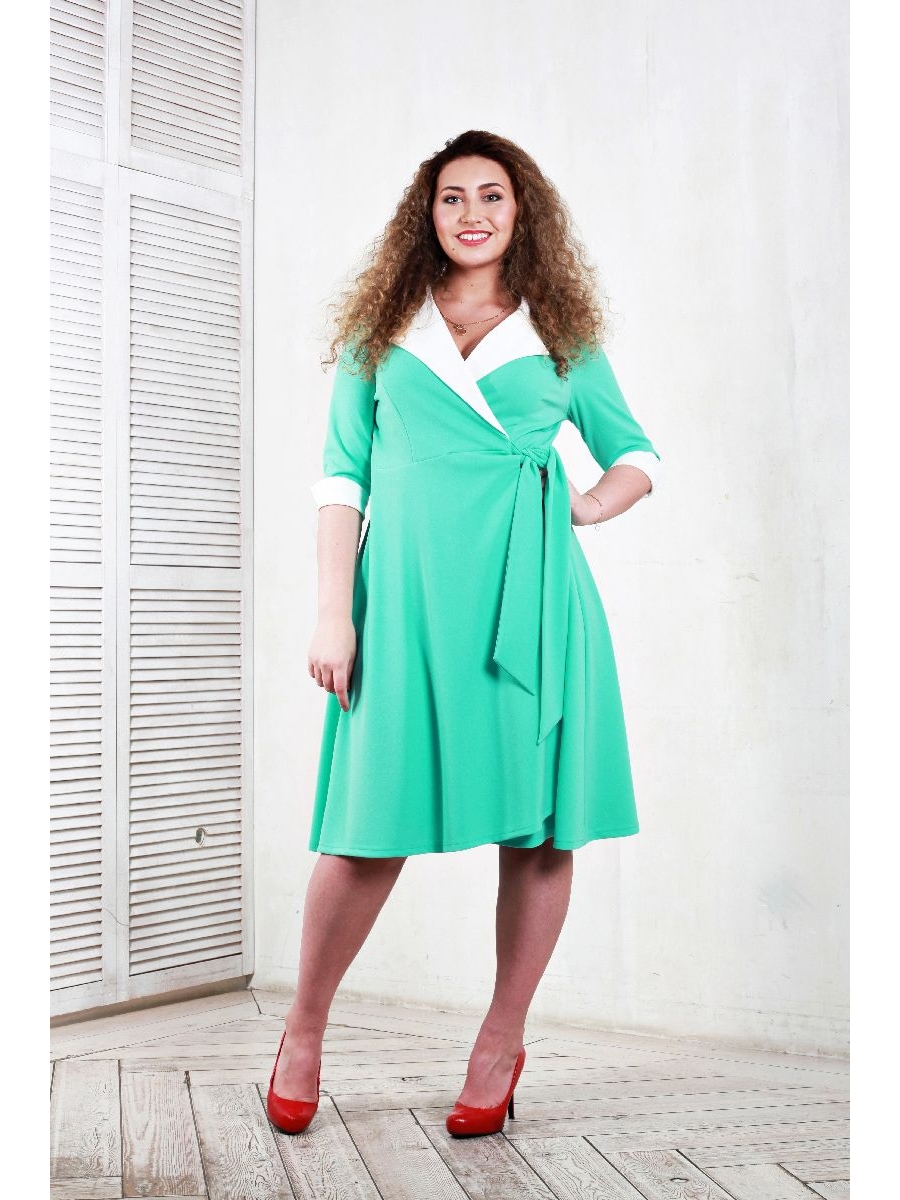 Роскошное платье с запахом ментолового цвета смотрится на «аппетитных» женщинах незабываемо эффектно, это большое платье можно надевать в офис и в гости, на прогулку, на свидание, на семейное торжество – оно идеально для любой ситуации. Его глубокий V-образный вырез способен привлечь внимание к роскошному бюсту своей хозяйки, а необычный крой – к соблазнительным изгибам. Большое платье с запахом элегантно и дерзко смотрится на даме с пышными формами, оно ее стройнит, садится точно по фигуре, универсально и оригинально. Созданная специально для полных леди, эта модель восхитительна, она способна стать украшением коллекции любой дамы, самым любимым и востребованным.
