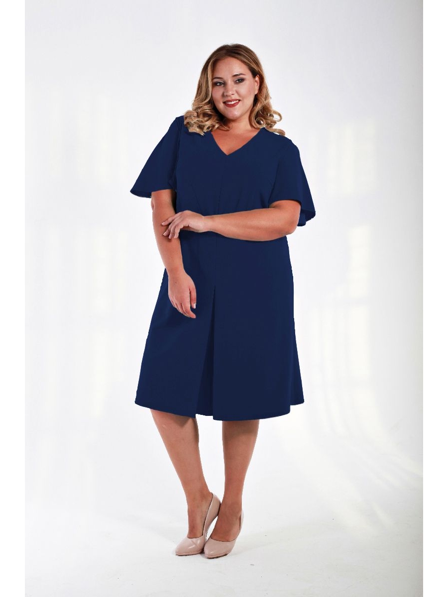 Оригинальное платье из крепа с эластаном. По линии талии фигурная линия подреза. Рукав "крылышко" втачивается в рельефный шов верхней части переда, проходит через линию плеча и заканчивается на спинке углом. Нижняя часть платья трапецеевидного силуэта со встречной складкой по центру переда.