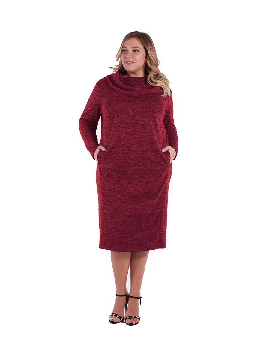 • Название: Платье с воротником "хомут" из джерси меланж, бордового цвета