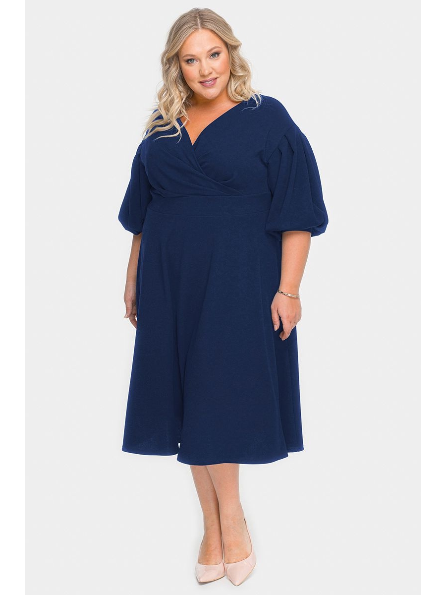 Изысканное платье прилегающего силуэта Верхняя часть переда отрезная с романтичной драпировкой. Двойной втачной пояс поддерживает талию. Нижняя часть расклешенная. Линия плеча занижена. Рукав "фонарик" спущенный, объемный, заканчивается манжетом. Элегантность этой модели придает утонченное сочетание драпировки и безупречность кроя.