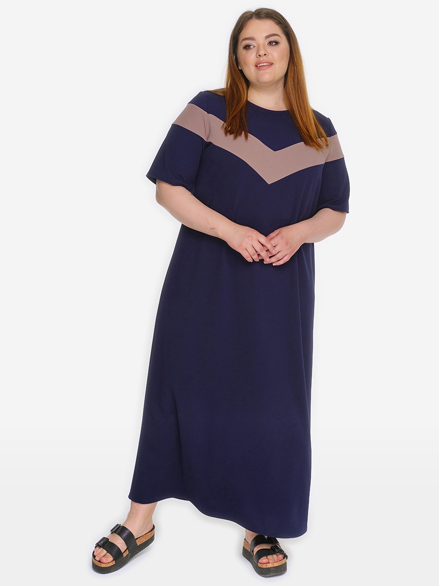 • Название: Платье с отделкой по кокетке и рукавам, темно-синее, отделка кофе
