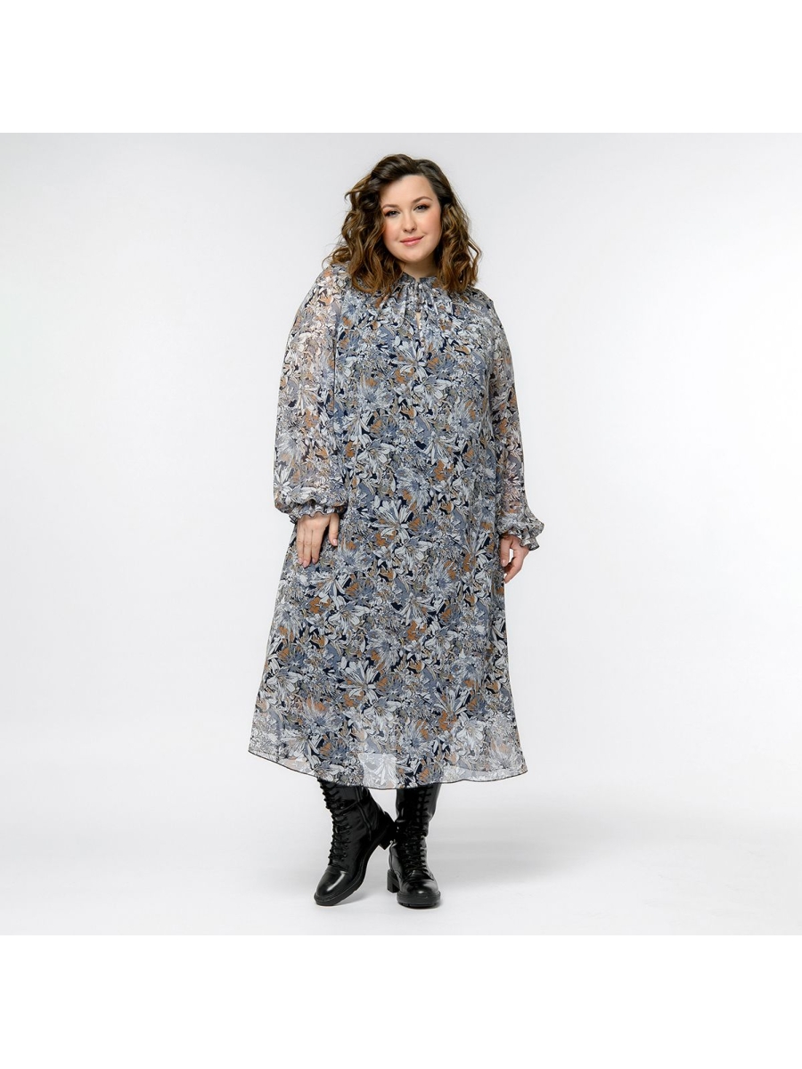 Изысканное платье из шифона длиной миди, А-силуэта. По горловине воротник стоечка. По центру переда стоечка завязывается на шнурочки из основной ткани.