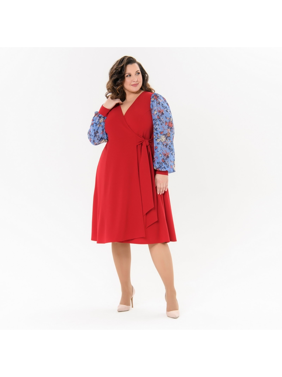• Название: Платье с запАхом красное, с рукавами из шифона