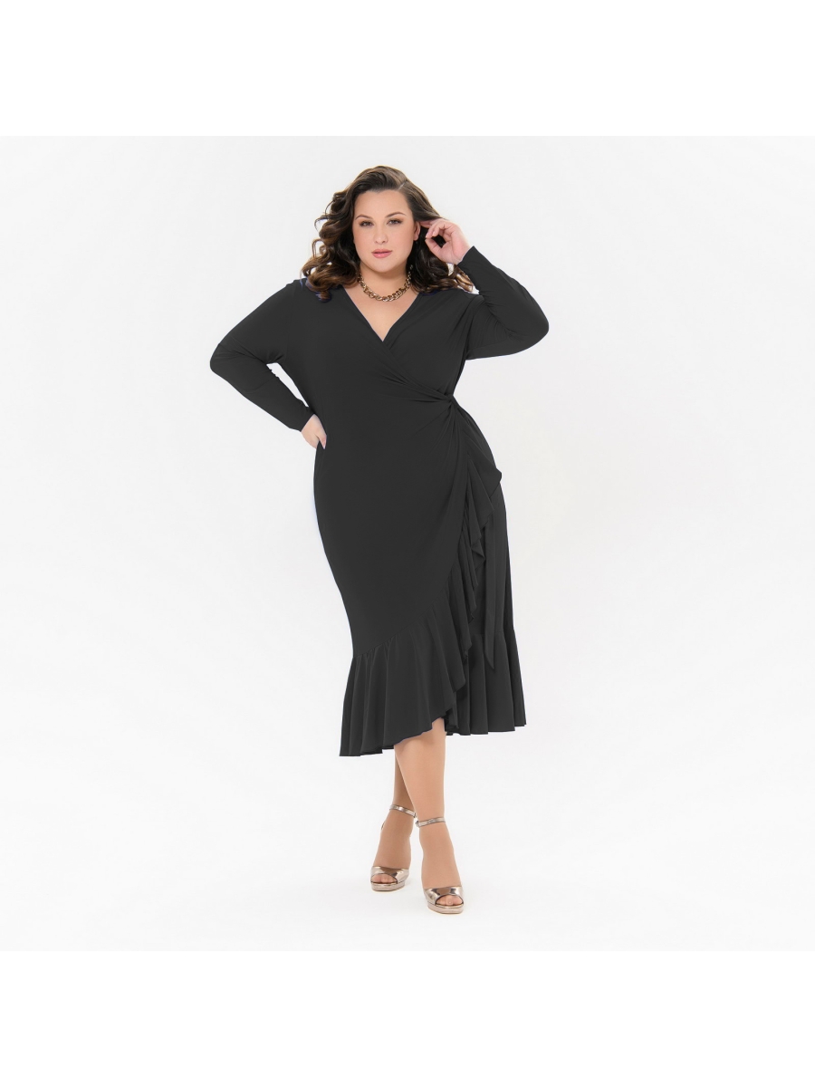 • Название: Платье с воланом из трикотажа - "масло", черное