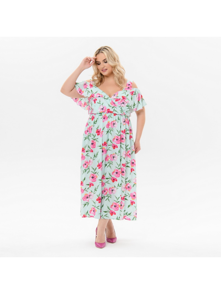 Воздушное платье-сарафан из 100% вискозы. Верхняя часть отрезная, с запАхом, на бретелях (ширина бретели 4 см), конструктивно продумана и ненавязчиво открывает зону декольте. По вырезу горловины переда и спинки втачан волан, на уровне руки переходящий в "крылышко". По шву соединения юбки с лифом резинка, не стесняющая движений, но одновременно прорисовывающая линию талии.