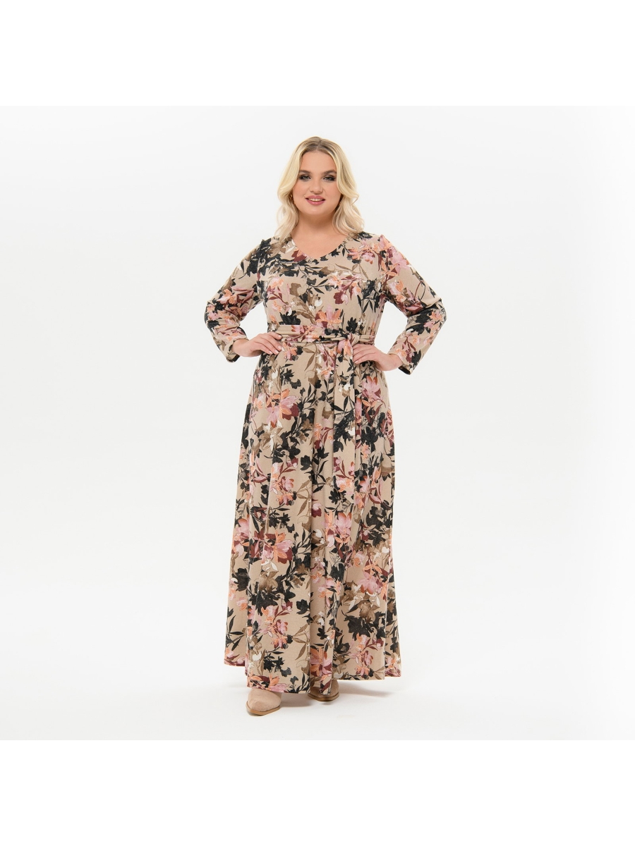 Комфортное длинное платье из джерси-ангора с эластаном. Платье отрезное немного выше линии талии, юбка расклешенная. V-вырез по горловине..