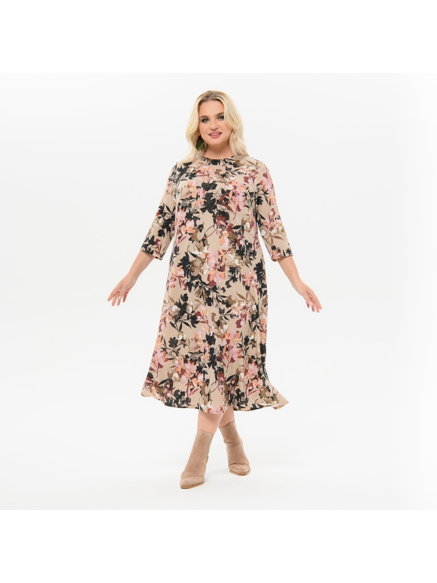 • Название: Платье миди, полуприлегающего силуэта, джерси - ангора бежевая, принт цветочный
