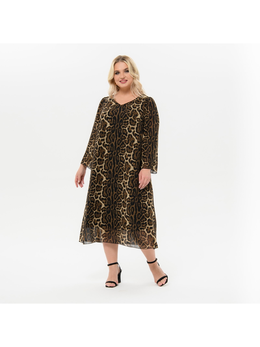 Центральный шов по переду и V-вырез зрительно вытягивают силуэт.