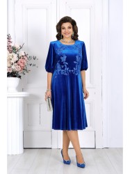 Это не просто наряд — это воплощение элегантности и утончённого вкуса. Мягкий бархатный велюр играет на свету, создавая эффект дорогого сияния, а дизайнерская аппликация подчёркивает статус и делает образ неповторимым. Платье красиво струится по фигуре: полуприлегающий лиф и расклешённая юбка формируют женственный силуэт, а рукава с лёгкой сборкой добавляют романтичности. Каждая деталь продумана — от изящной посадки до удобной скрытой застёжки. В таком платье вы будете блистать на новогоднем вечере, корпоративе или любом праздничном событии. Это наряд, который не оставит равнодушным и станет вашей визитной карточкой стиля.