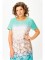 885.2 бежевый принт «ярко-голубые и белые листья»