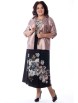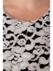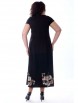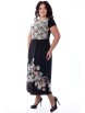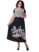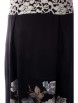 Стильное платье-макси полуприлегающего силуэта из трикотажного полотна черно-серого цвета с купронным рисунком. Круглый вырез изделия обработан обтачкой. Верхняя часть переда декорирована роскошным кружевом. Платье отрезное по линии талии. Юбка дополнена конструктивным горизонтальным швом и складками. По спинке изделия - потайная молния.