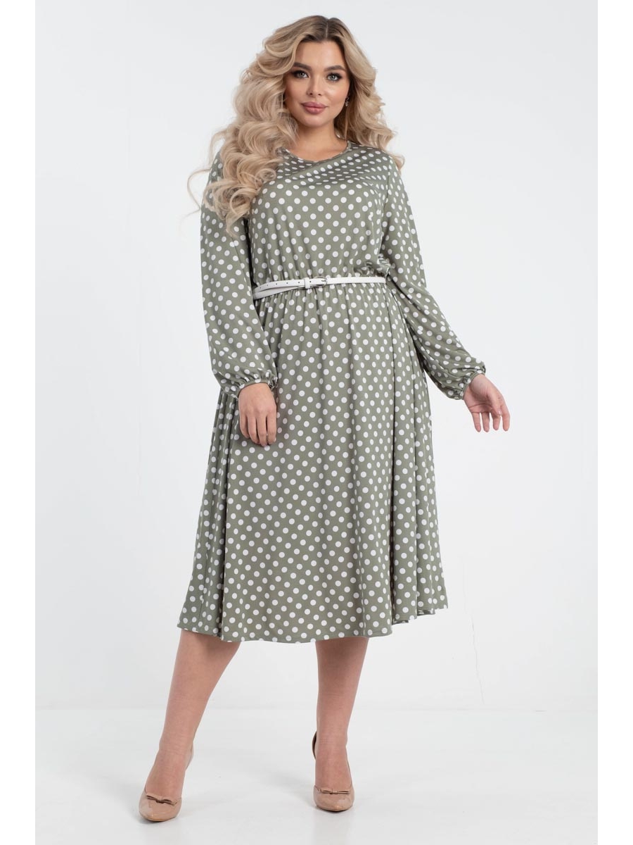Романтичное платье полуприлегающего из трикотажного полотна зелено-белого цвета. Круглый вырез изделия обработан внутренней обтачкой. Втачные рукава обработаны окантовкой. Линия талии эффектно подчеркнута внутреним поясом с резинкой. Длина изделия по спинке от плечевого шва до низа изделия — 125 см. Рост фотомодели — 170 см.