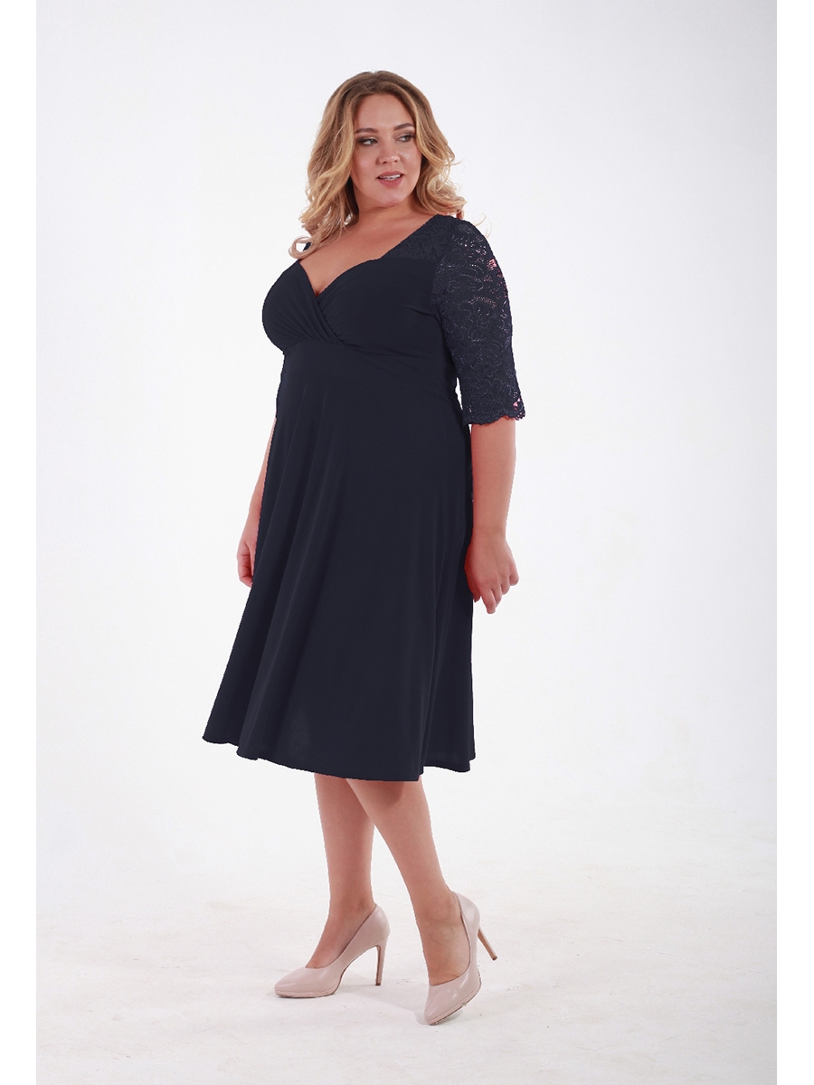 Эффектное коктейльное платье прилегающего силуэта, расклешенное к низу. Кокетка и рукава 3/4 выполнены из кружева. Элегантность этой модели придает утонченное сочетание отделки кружевом и безупречность кроя. Данная модель прекрасный выбор для любого торжества, в нем Вы будите неотразимы.