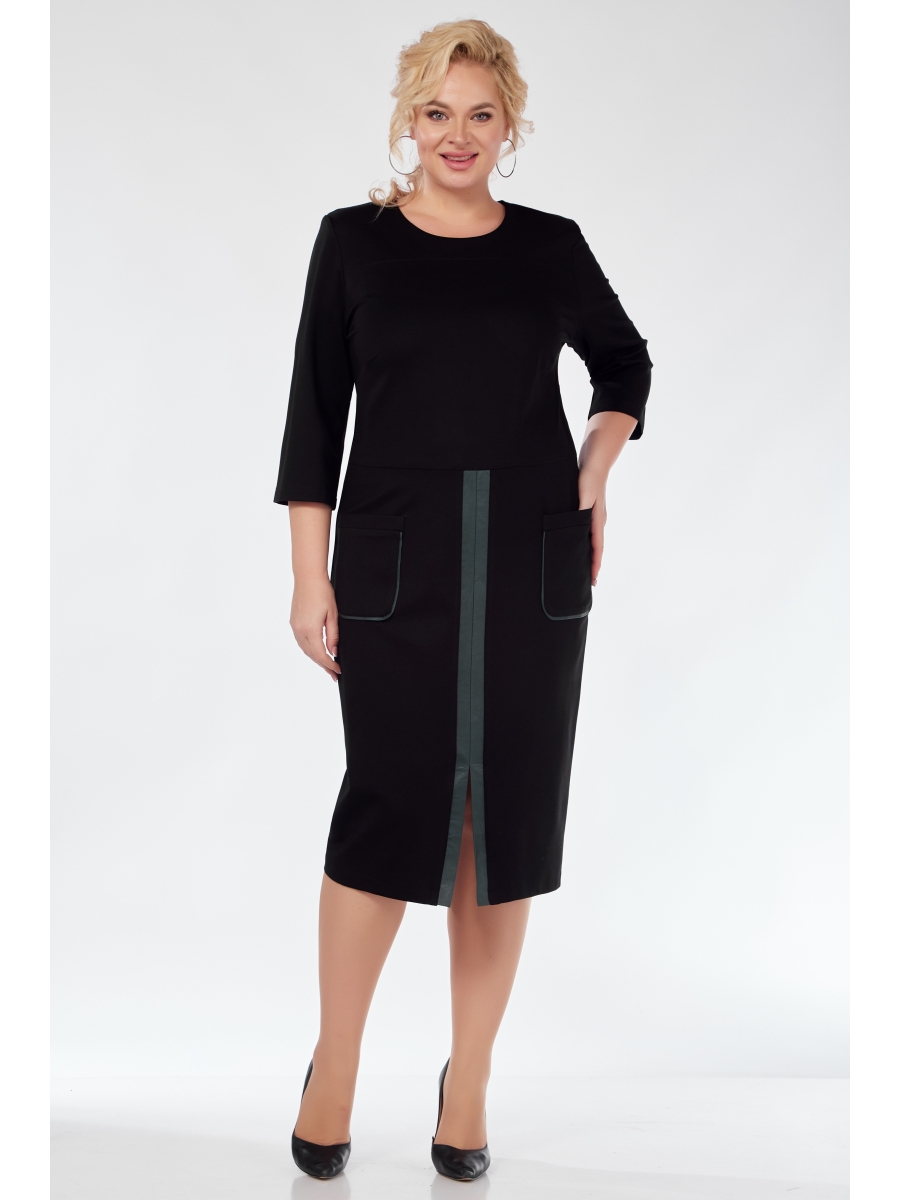 Оформить заказ →Платье женское полуприлегоющего силуэта,выполнено из трикотажной ткани. Перед украшен отрезной планкой из экокожи и накладнымси карманами с кантом. Рукав втачной 3/4.