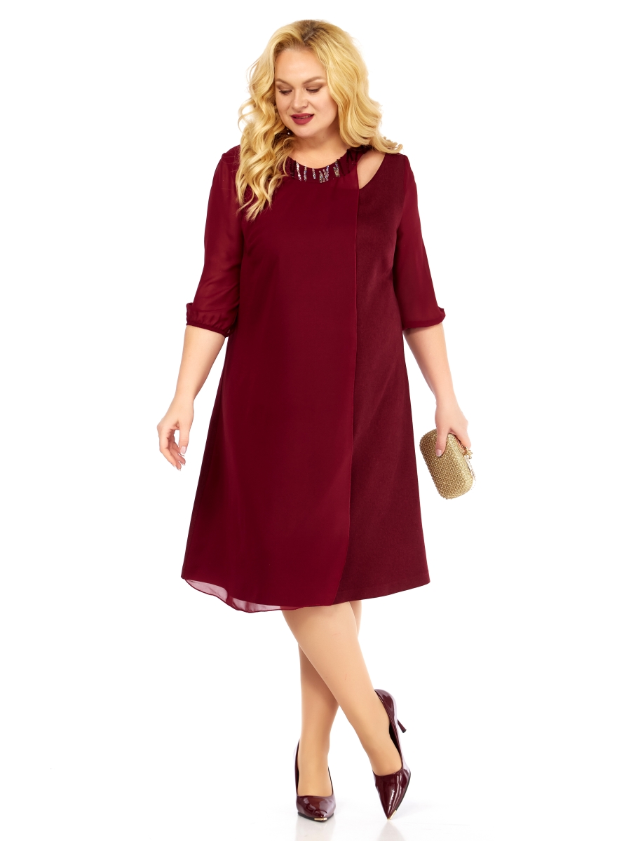 Оформить заказ →Платье женское А-образного силуэта. Застежка молния по спинке. Полочка сложного кроя с фигурной горловиной и отрезной декоративной ее частью. Рукав и верхняя часть полочки из шифона.