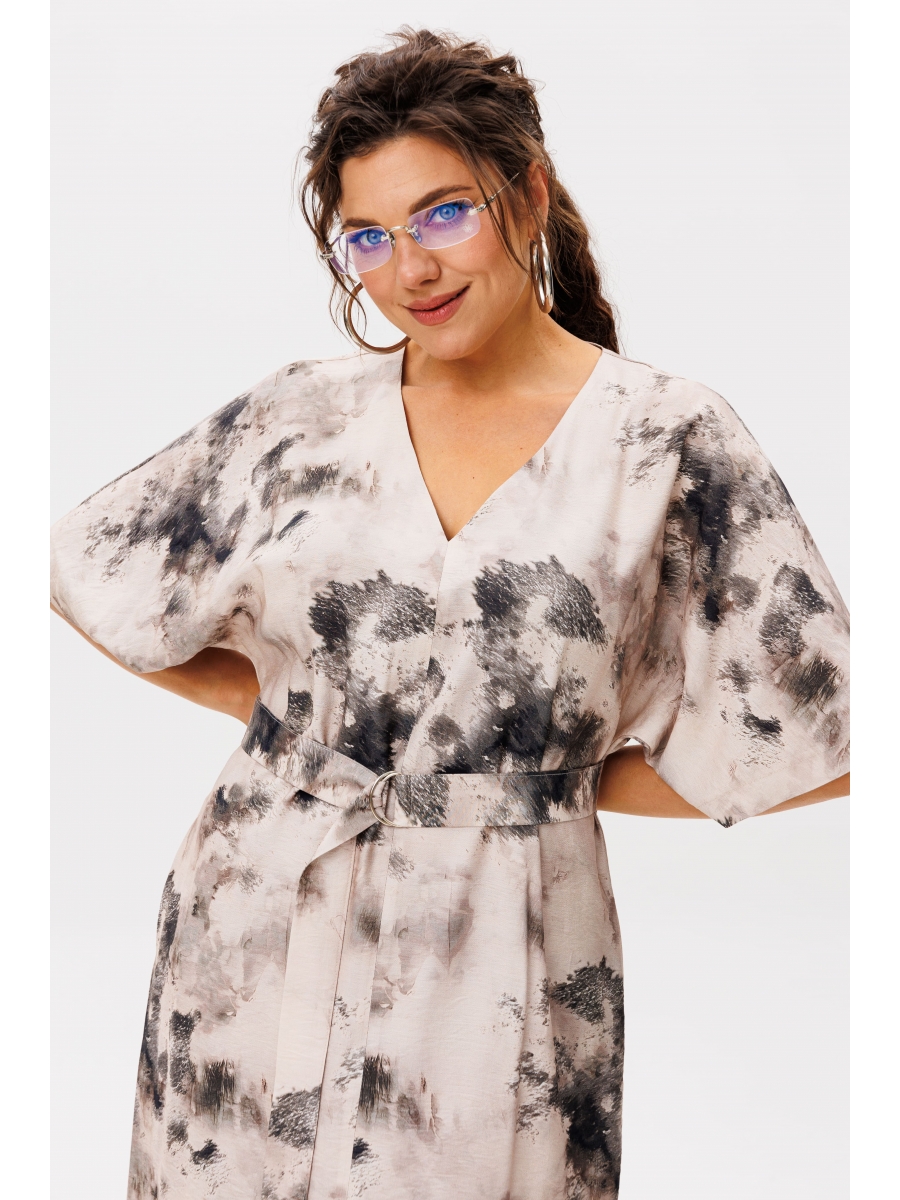 V-образный вырез горловины придает платью ноту утонченности, подчеркивая женственность без излишней откровенности. Дополненное поясом, оно приобретает более структурированный вид, позволяя подчеркнуть талию и создать идеальные пропорции.