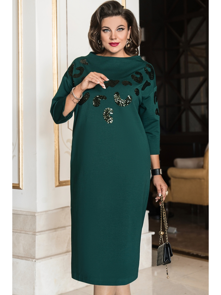 Вау какая красота! В этом платье вы будете чувствовать себя королевой! Стильное платье в лаконичном сочетании однотона с декоративной вышивкой «пайетка». Данная модель будет отличным вариантом как для торжественных мероприятий, так и для повседневных образов. Платье идеально смотрится на разных типах фигуры: скроет недостатки, а также удачно подчеркнёт достоинства фигуры. Платье прямого силуэта, удлинённое, заужается к низу; горловина округлой формы слегка завышена, линия плеча спущенная. В качестве дополнительного элемента декоративная вышивка из пайеток. Спинка без особенностей, с вытачками по горловине. В боковых швах платья карманы. Рукав втачной, одношовный, длиной ¾ с элементом декоративной вышивки.