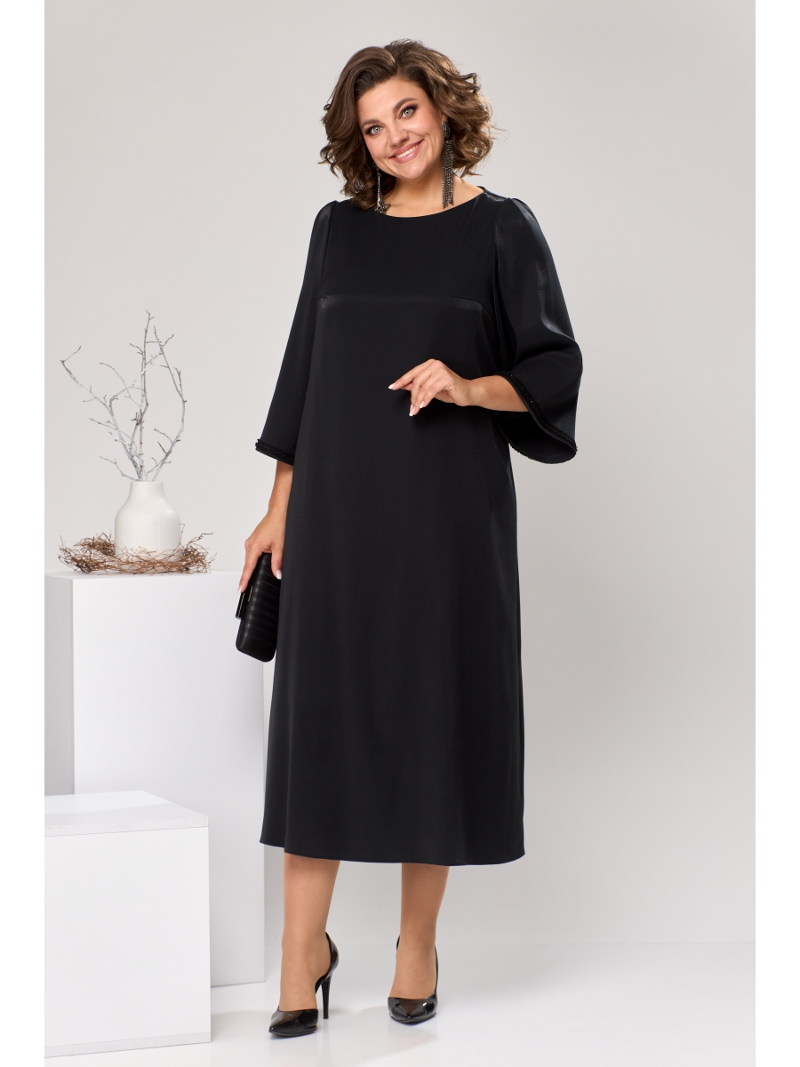 Платье женское, относится к торжественной одежде. Платье женское А-силуэта, длиной до середины икры. Перед с 2-мя нагрудными вытачками. Спинка со средним швом. Горловина обточная "лодочка", без воротника. Рукав втачной, одно шовный, длинной 3/4, низ рукава декорирован на строчной отделочной тесьмой, окат рукава со встречной складкой. Платье на подкладке. Платье без плечевых накладок.