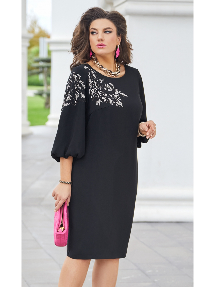 Лаконичность, стиль и ничего лишнего, так можно описать данную модель платья. Красивое сочетание оттенков чёрного и бежевого данной модели придаёт необычность. В нем Вы будете неотразимы на праздничной вечеринке и в вечернем выходе, а также смело можете надеть его в офис. По переду платья и рукаву выполнен необычный принт, часть рисунка нанесена лазерной перфорацией на просвет, а часть флоком. Из-под перфорации светится бежевая подложка, все это делает принт «живым» и объёмным, создавая необычный эффект, что и является основной «изюминкой» данной модели. Платья прямого силуэта, горловина округлой формы, по переду с нагрудными вытачками, выполненное из струящейся ткани. Спинка со средним швом, заканчивающимся шлицей. Потайная молния в боковом шве. Рукав втачной, по низу с красивой сборкой с напуском.