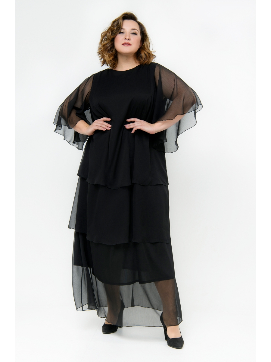 Вечернее длинное платье из шифона на подкладке. Платье А-силуэта состоит из трех частей, каждая из которых отлетная.