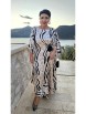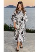 Шикарное платье с принтом в модном анималистическом стиле - для приверженцев ярких и стильных образов. Ткань из высококачественной вискозы атласного переплетения - мягкая, приятная к телу, имеет матовый благородный блеск. Следуя оригинальному крою, нежная вискоза создает красивые мягкие встречные складки по талии, а от бедер элегантно струится вниз, скрывая несовершенства фигуры, создает гармоничный образ. Графичный зебровый принт скрадывает объем и визуально вытягивает силуэт.По талии платье декорировано съемной брошью в форме цветка. Это изысканное платье преобразит любую женщину, подчеркнет природную красоту и изящество!