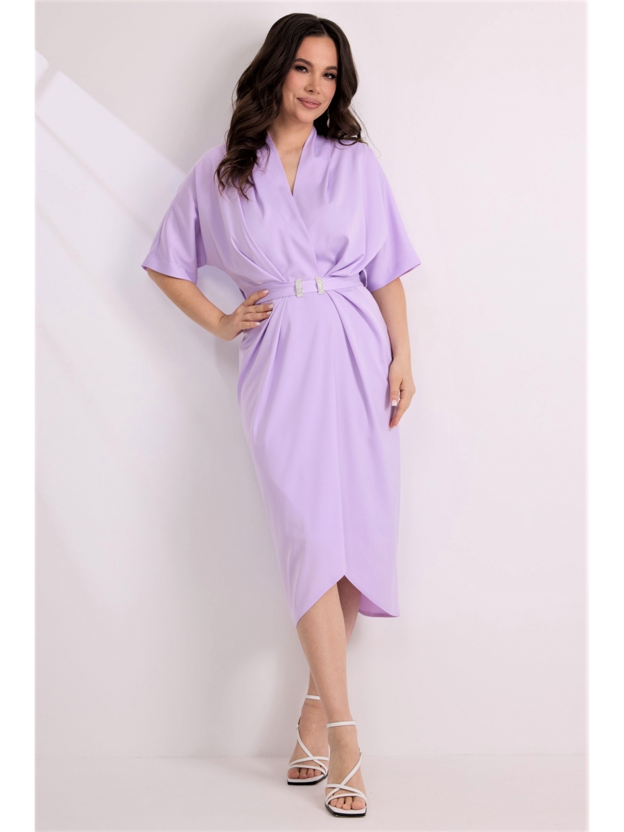 Элегантное нарядное платье приталенного силуэта. Оригинальный крой платья имитирует запах. Платье дополнено подкладкой. Рукав цельнокроеный. По талии платье отрезное.